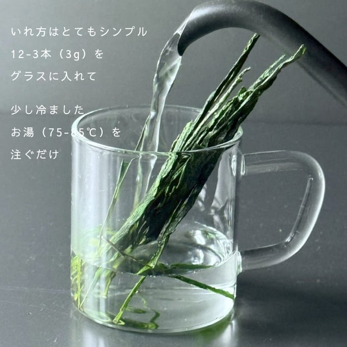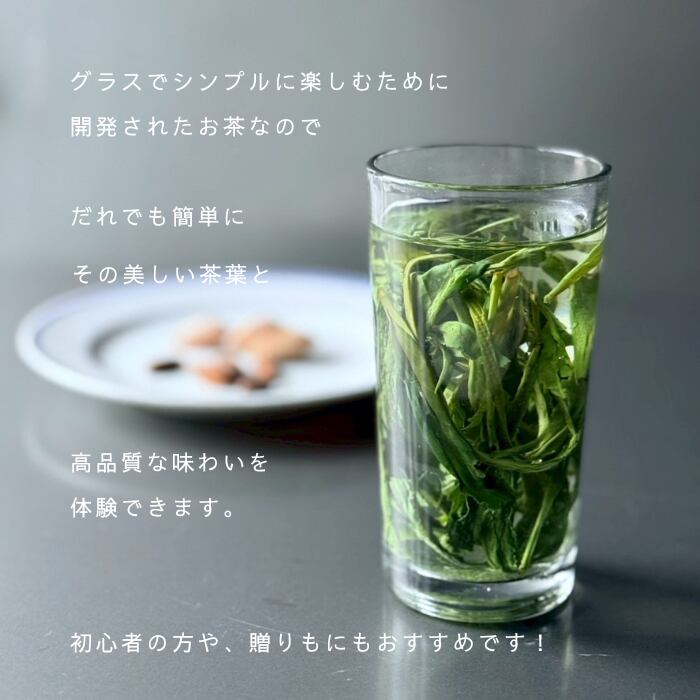いれかたもシンプルで、付属のグラスしか道具は使わないので、お茶通の方はもちろん初心者の方にも幅広くお楽しみいただけます。
