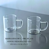 付属の美しくミニマルなグラス、BOROSIL VISION MUG ESP 120ml にお茶を入れてお湯を注ぐだけ。