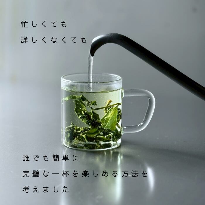 素材の良さを引き出し、もっともシンプルにお茶を楽しめる専用グラス2個付き。