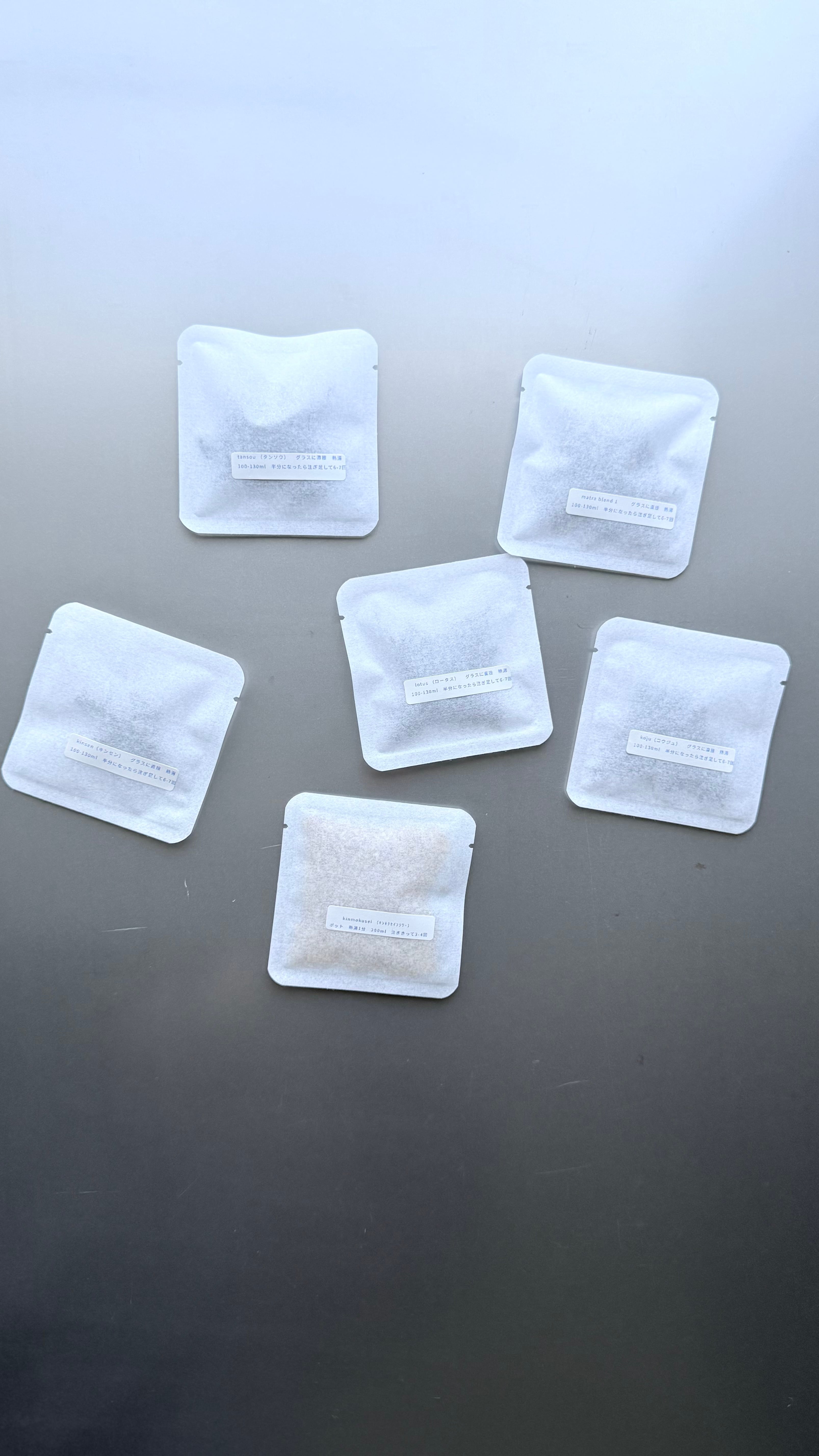 お茶がグラス一回分(100-130ml)入った小袋です。詳細はお問い合わせください。